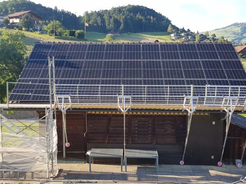 Der Verein/Stiftung Artilleriewerk Faulensee baut in Zusammenarbeit mit der Genossenschaft SpiezSolar auf dem Dach des Hauptgebäudes die erste von fünf Solaranlagen. Die produzierte Energie von